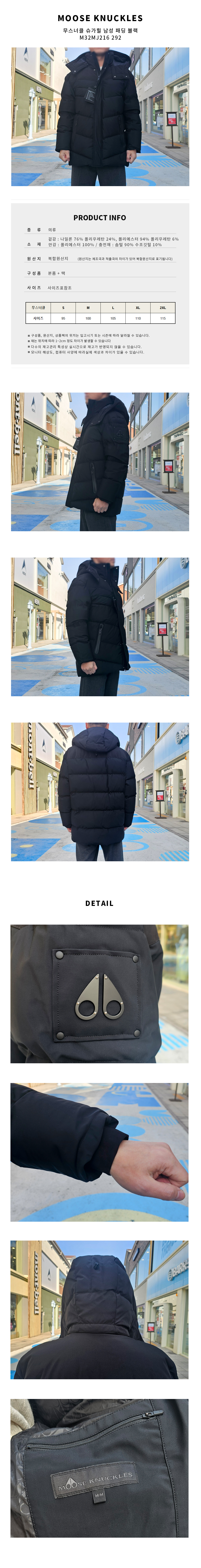| 상품명 / 모델명 | 무스너클 슈가힐 남성 패딩 블랙 M32MJ216 292 [여주아울렛] / M32MJ216 292 |