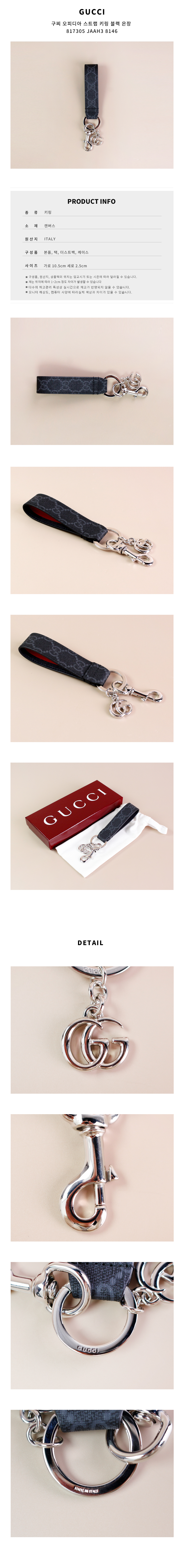 상품명 / 모델명 구찌 오피디아 스트랩 키링 블랙 은장 817305 JAAH3 8146 [여주아울렛] / 817305 JAAH3 8146