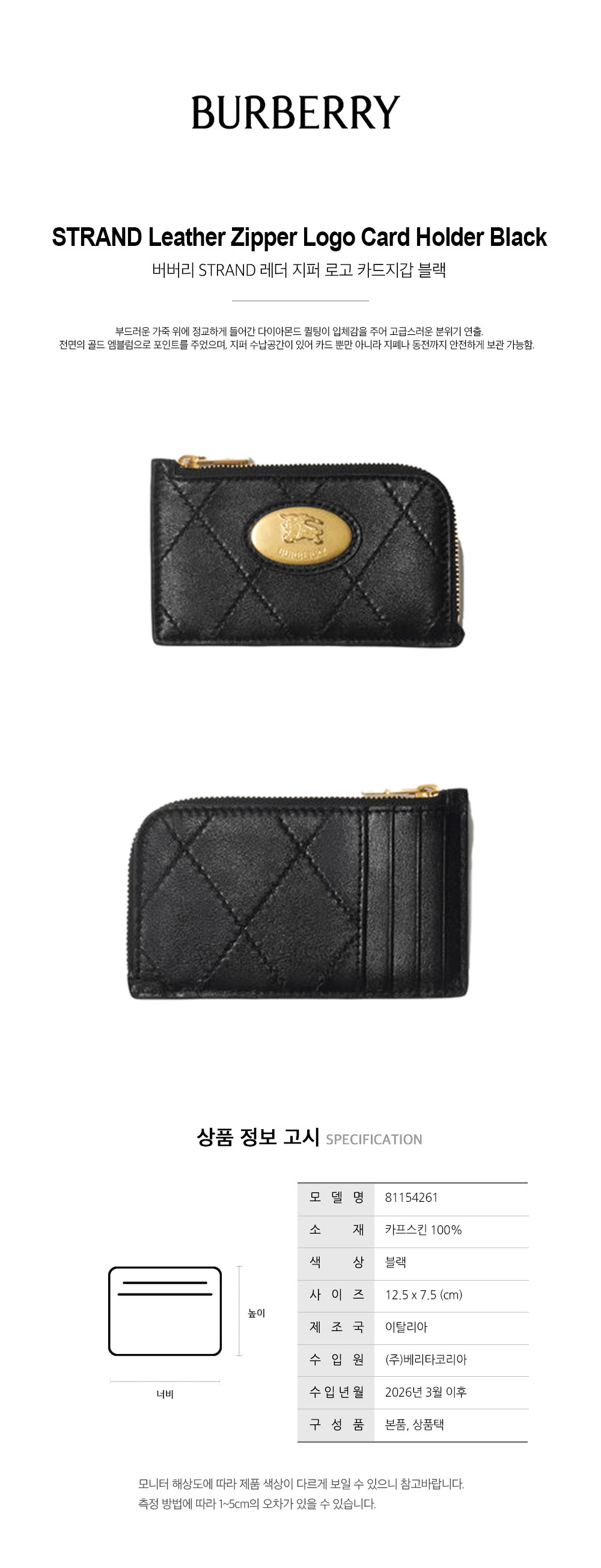 버버리 버버리 STRAND 레더 지퍼 로고 카드지갑 블랙 81154261