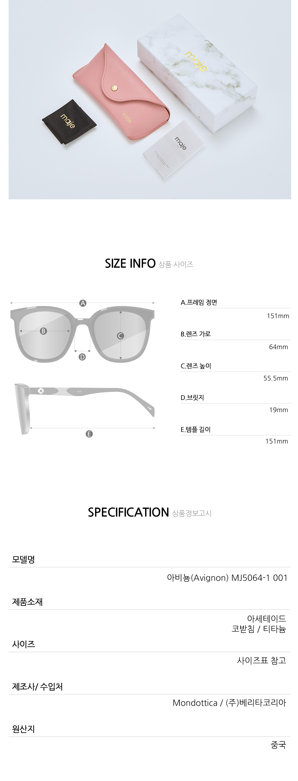 마쥬 마쥬 아비뇽 선글라스 블랙 MJ5064-1 001 MAJE AVIGNON