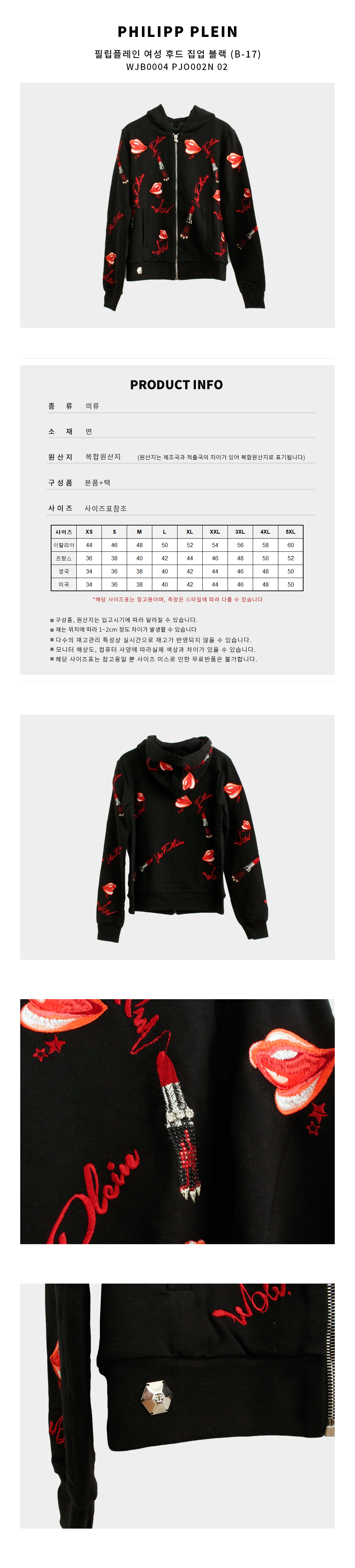 | 상품명 / 모델명 | 필립플레인 여성 후드 집업 블랙 WJB0004 PJO002N 02 (B-17) [여주아울렛] / WJB0004 PJO002N 02 |