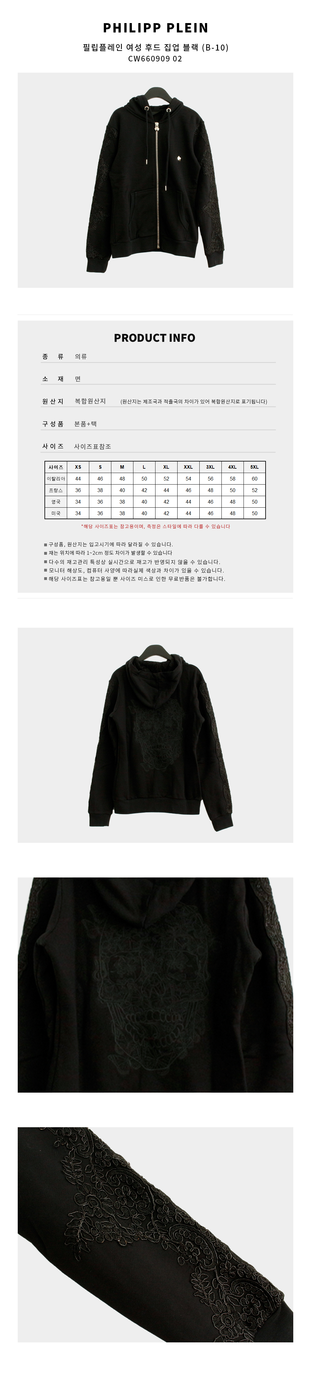 | 상품명 / 모델명 | 필립플레인 여성 후드 집업 블랙 CW660909 02 (B-10) [여주아울렛] / CW660909 02 |