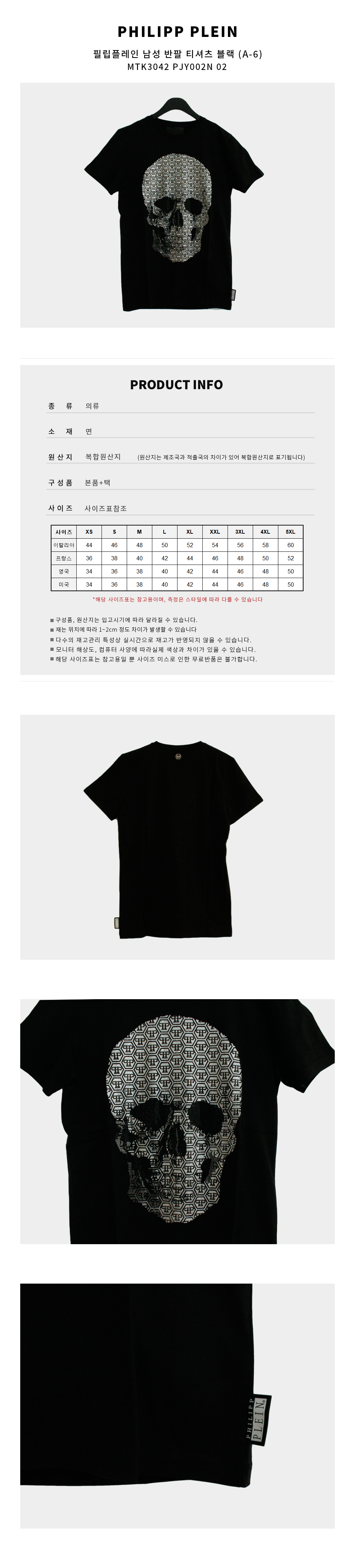 | 상품명 / 모델명 | 필립플레인 남성 반팔 티셔츠 블랙 MTK3042 PJY002N 02 (A-6) [여주아울렛] / MTK3042 PJY002N 02 |