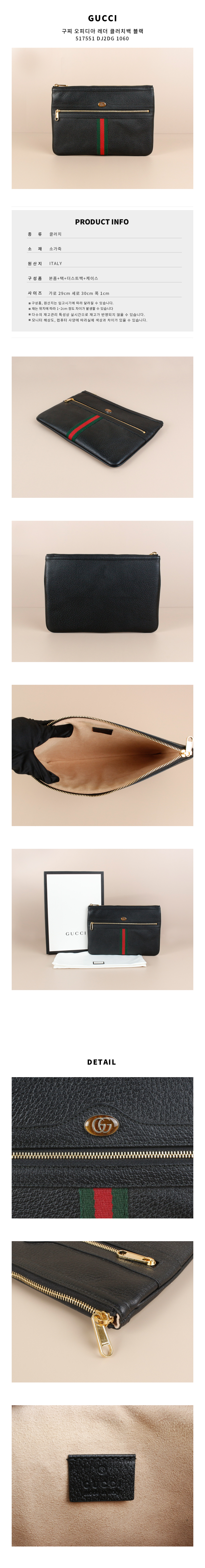 | 상품명 / 모델명 | 구찌 오피디아 레더 클러치백 블랙 517551 DJ2DG 1060 [여주아울렛] / 517551 DJ2DG 1060 |