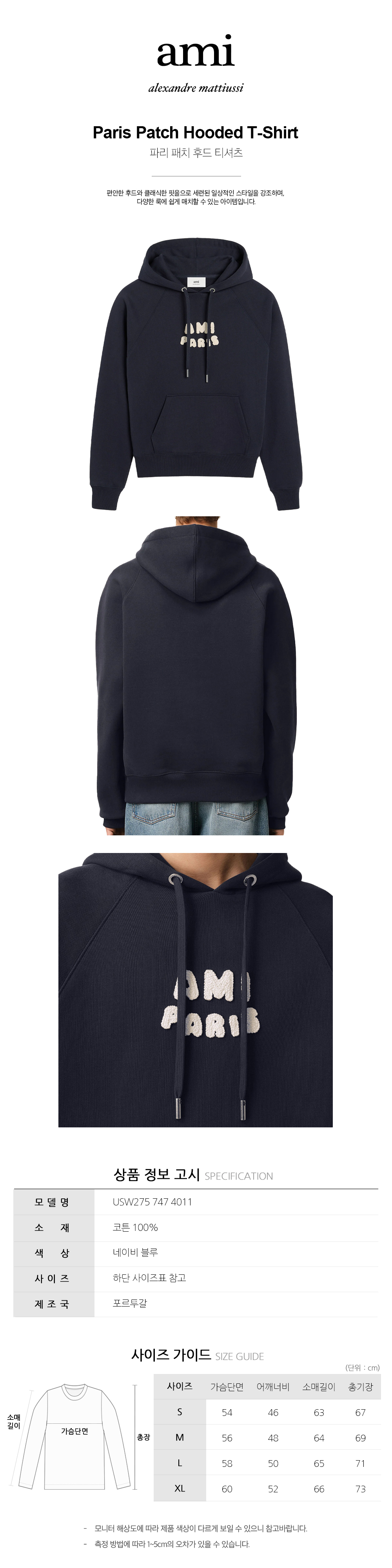 아미 아미 파리 패치 후드 티셔츠 네이비블루 USW275 747 4011