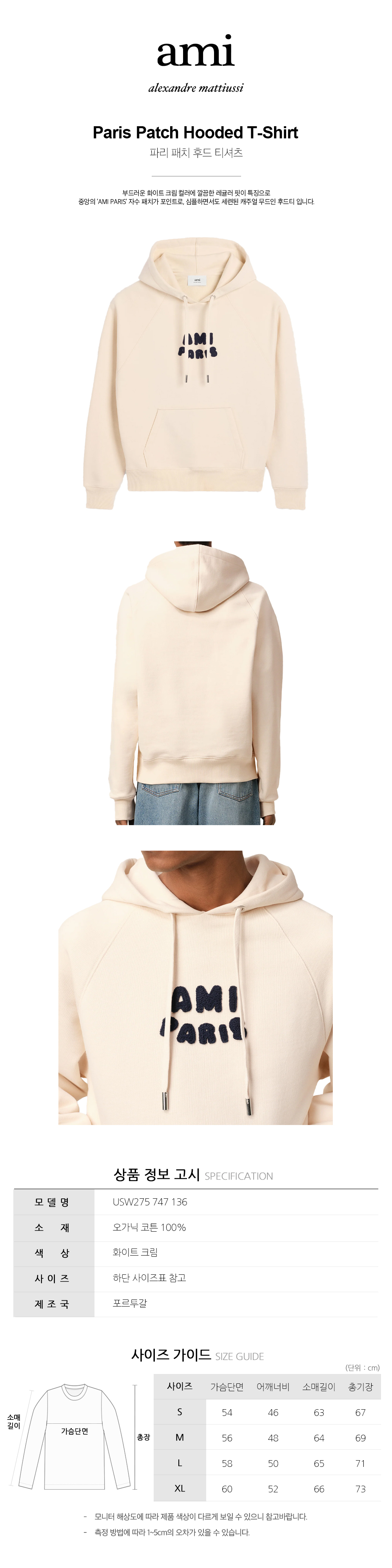 아미 아미 파리 패치 후드 티셔츠 화이트크림 USW275 747 136
