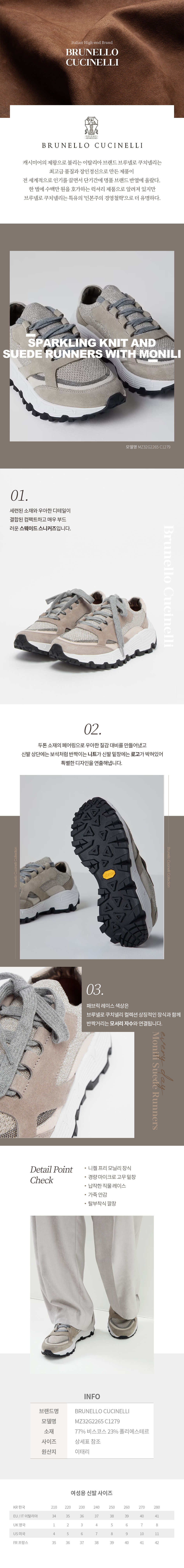 브루넬로 쿠치넬리 브루넬로쿠치넬리 여성 모닐리 스웨이드 패널로우 스니커즈 MZ34G2265 C1279