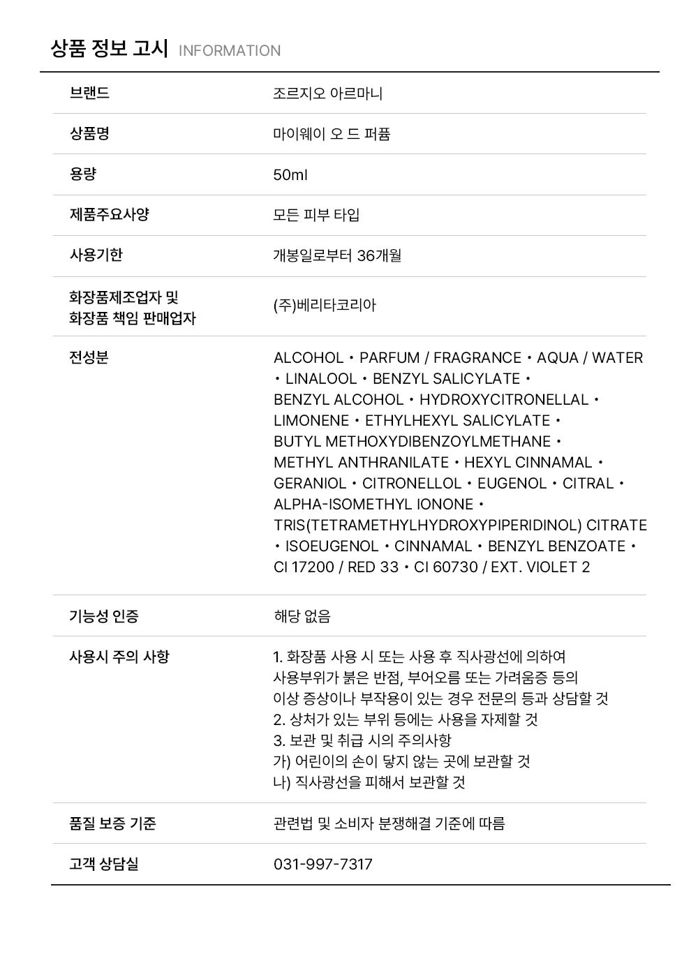 조르지오 아르마니 아르마니 마이웨이 오 드 퍼퓸 50ml
