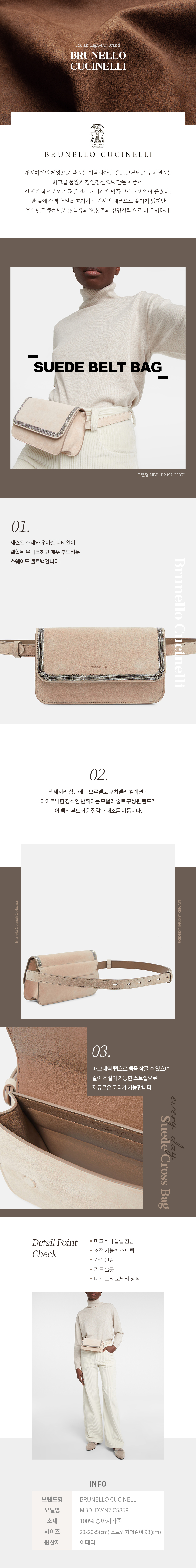 브루넬로 쿠치넬리 브루넬로 쿠치넬리 스웨이드 벨트백 MBDLD2497 C5859