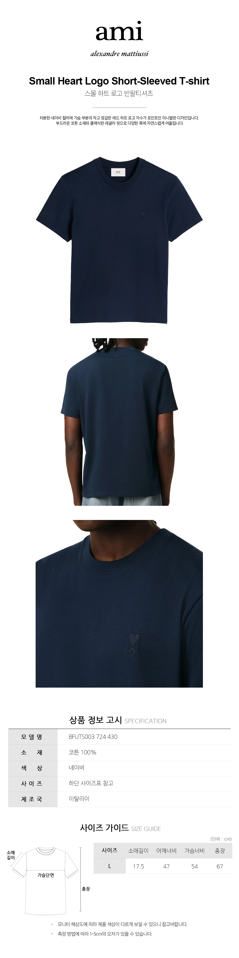 아미 아미 스몰 하트 로고 반팔티셔츠 네이비 BFUTS003 724 430