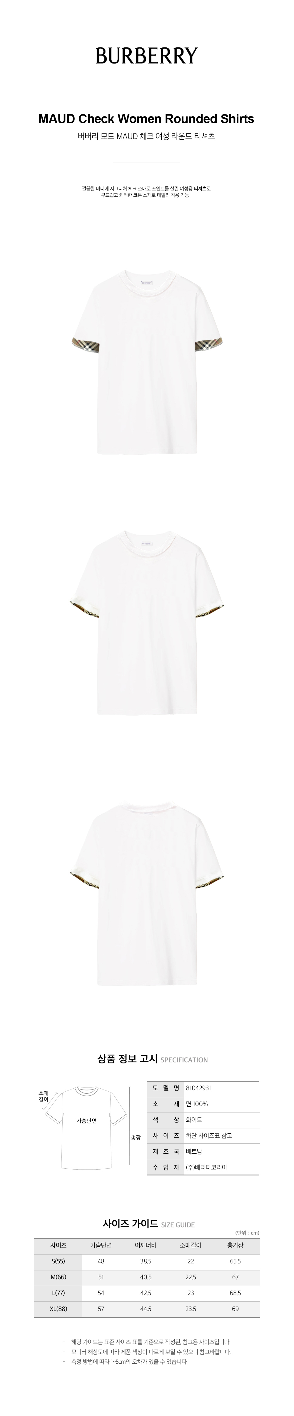 버버리 버버리 모드 MAUD 체크 여성 라운드 티셔츠 81042931 화이트