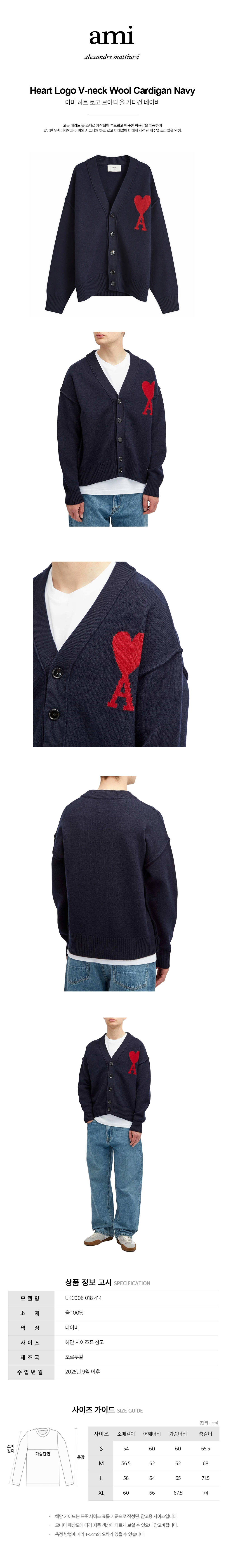 아미 아미 하트 로고 브이넥 울 가디건 네이비 UKC006 018 414