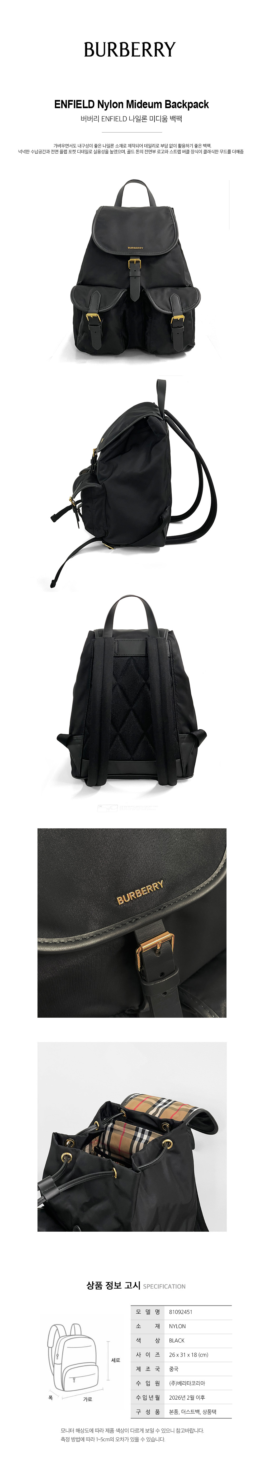 버버리 버버리 엔필드 ENFIELD 나일론 미디움 백팩 81092451