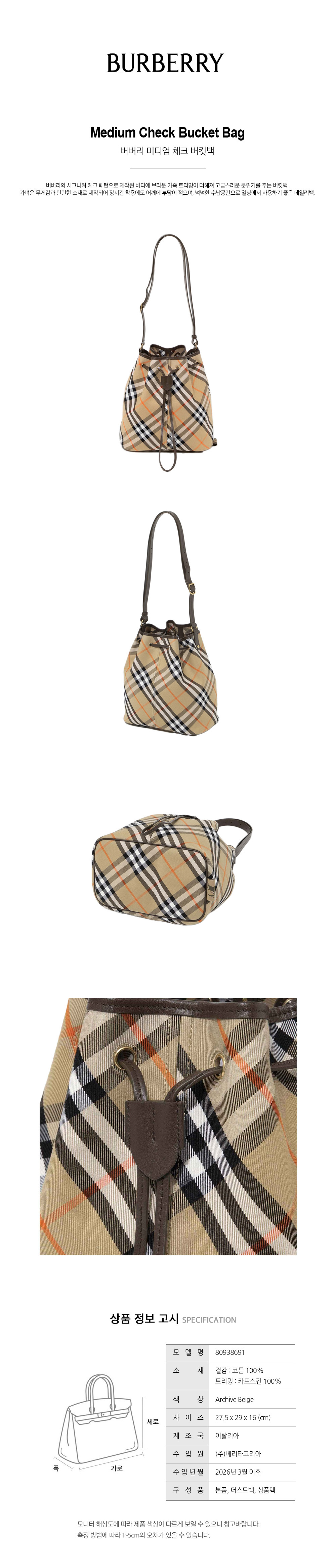 버버리 버버리 미디엄 체크 버킷백 80938691