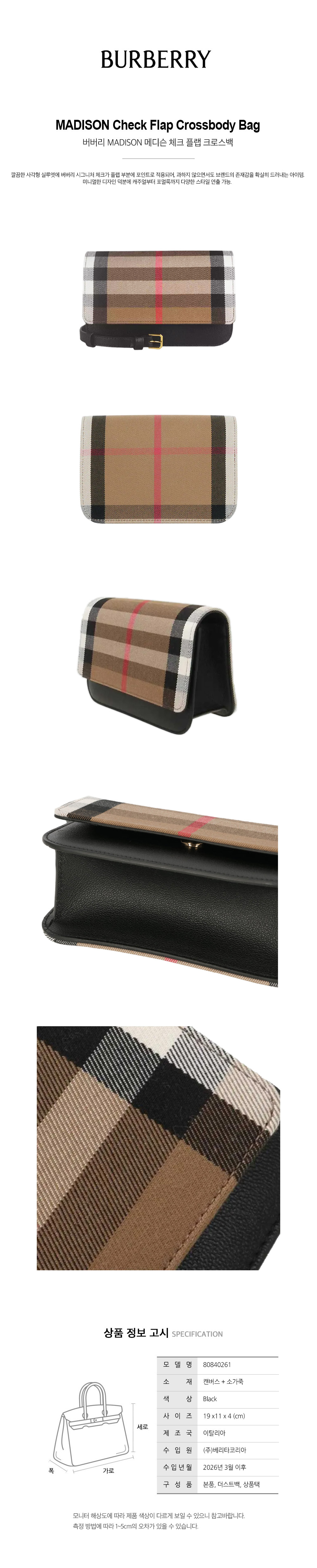 ![버버리 메디슨 체크 플랩 크로스백 블랙 80840261 [여주아울렛]](https://wowshopping.co.kr/data/product/459708034_HK3qdVst_2853d096d55db711eff40961b7c9a645f5b9a151.jpg?v=1773207892)