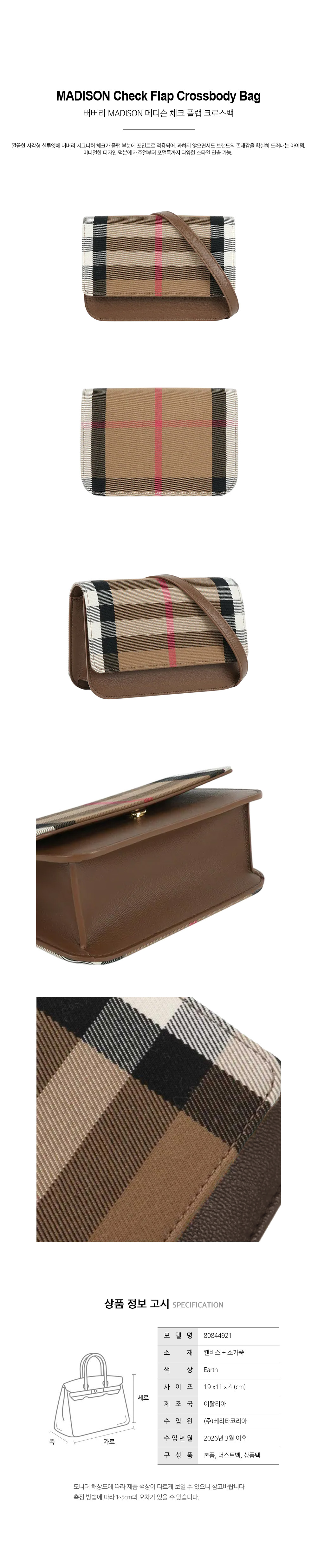 버버리 버버리 MADISON 메디슨 체크 플랩 크로스백 80844921