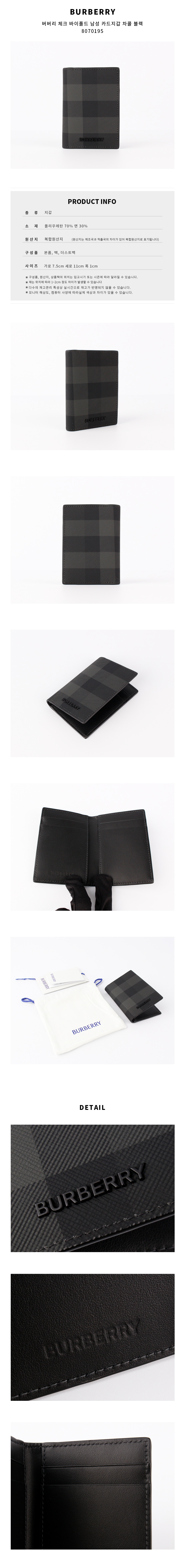 | 상품명 / 모델명 | 버버리 체크 바이폴드 남성 카드지갑 차콜 블랙 8070195 [여주아울렛] / 8070195 |