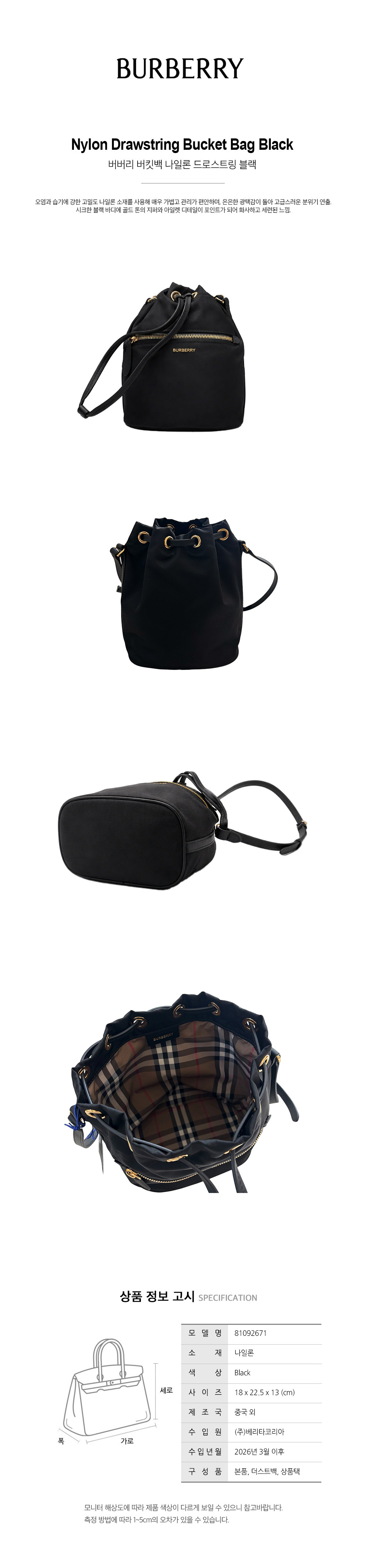 버버리 버버리 드로우스트링 나일론 크로스 버킷백 블랙 81092671