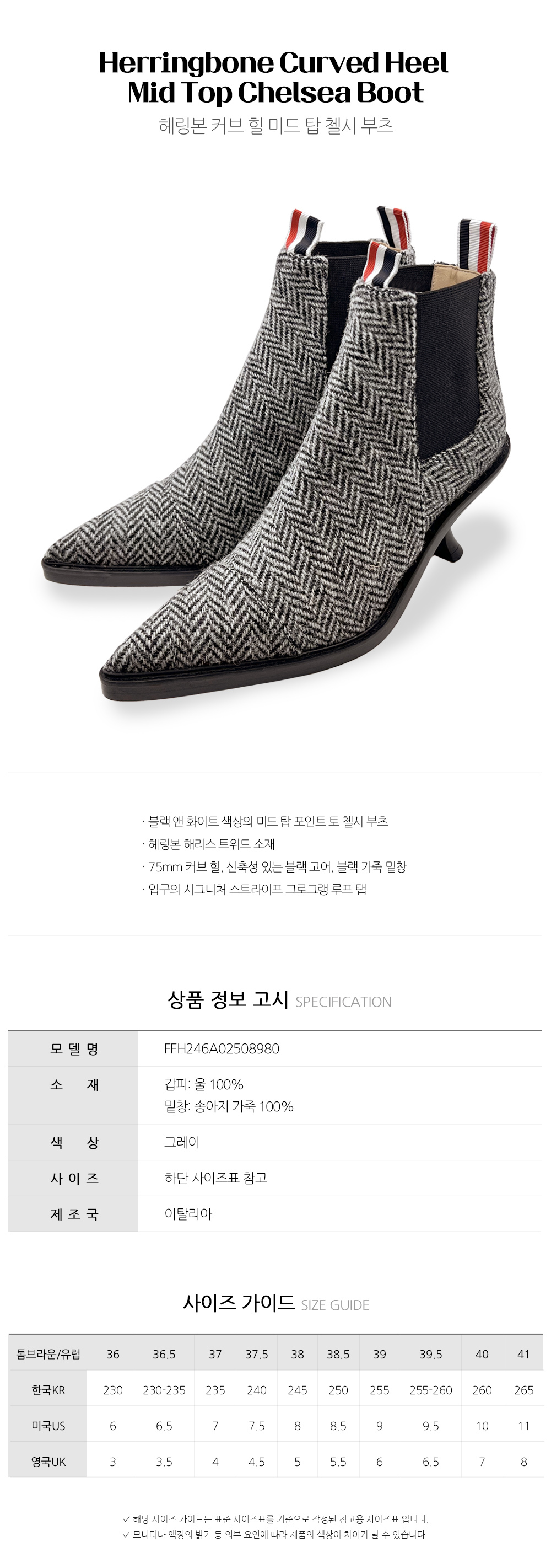 톰브라운 [전시상품] 톰브라운 헤링본 커브 힐 미드 탑 첼시 부츠 FFH246A 02508 980