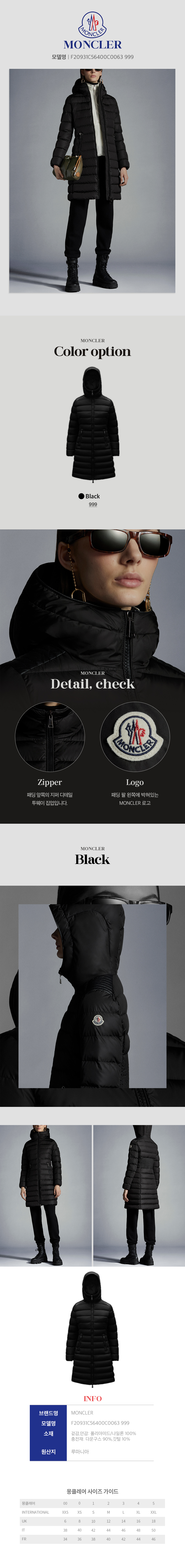 몽클레르 몽클레어 탈레브 여성 롱패딩 TALEV 블랙 F20931C56400C0063