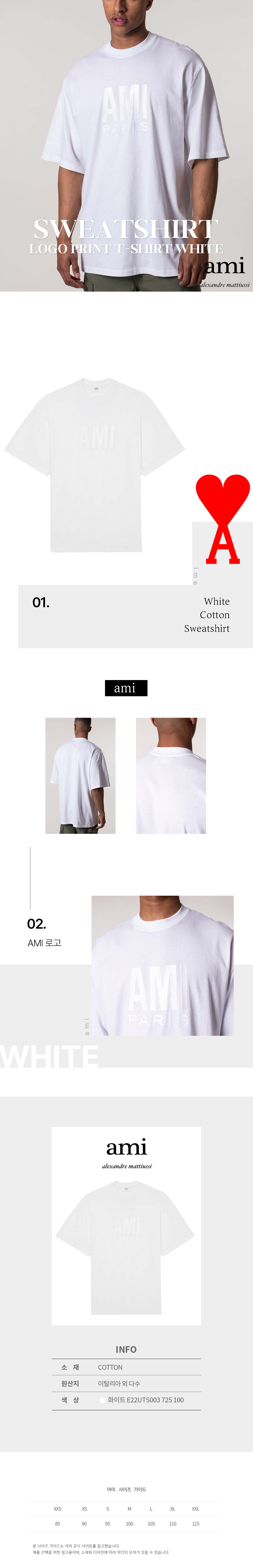 아미 아미 로고 프린트 반팔 티셔츠 반팔티 화이트 E22UTS003 725 100